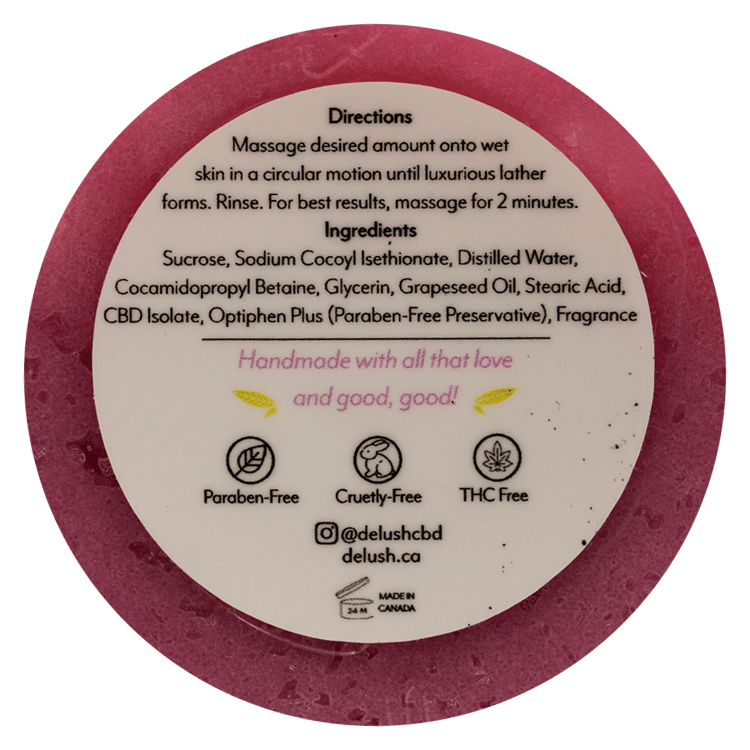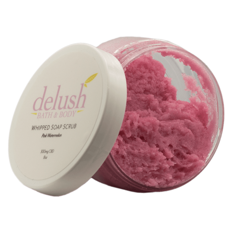Delush Bath and Body – Whipped Soap Scrub – Pink Watermelon 300mg CBD | BC Weed Edible Canada