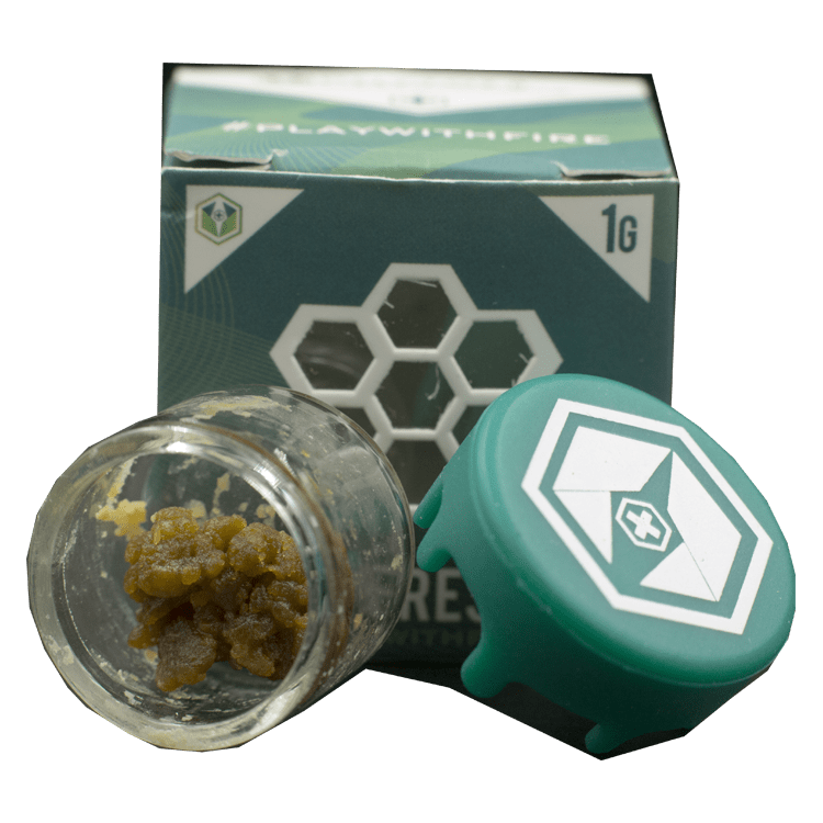 1 Gram of live resin inside a glass jar.